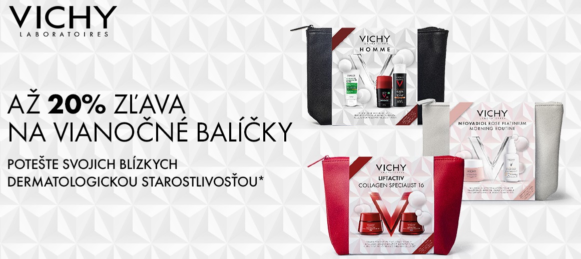 Súčasťou kozmetických produktov značky Vichy je vzácna termálna 💦 voda, obohatená o minerály. Práve vďaka nej je kozmetika Vichy taká účinná a blahodarne pôsobí na pleť. Teraz si ju môžete dopriať za 💖 výhodné ceny a v akciových baleniach. Vyberte si z kozmetických balíčkov a setov Vichy, ktoré nájdete v našej lekárni. Poteší vás pleťová kozmetika pre všetky typy pokožky a rôzne vekové kategórie, ale aj telová kozmetika.