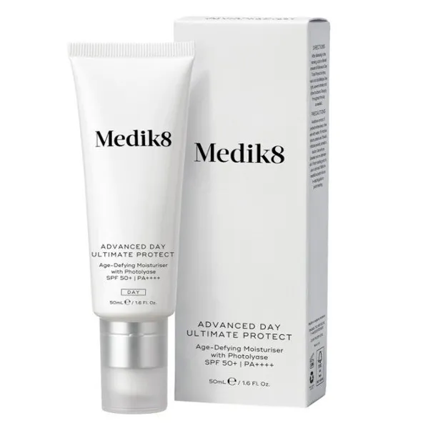Absolútna ochrana pre vašu pleť, maximálna starostlivosť a hydratácia, to je denný výživný krém Advanced Day Ultimate Protect od Medik8 s SPF 50, PA ++++ a obalenou fotolyázou na opravu poškodenia pleti. Na pleti ho ani neucítite, napriek tomu jej poskytne maximálnu podporu a starostlivosť.