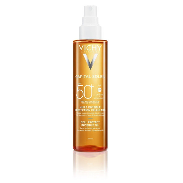 Zlepšuje kvalitu pokožky. Prípravok Cell Protect neviditeľný olej SPF 50+ zaisťuje ochranu na bunečnej úrovni s ultrasenzorickým pocitom oleja suchého na dotyk. Vhodný na tvár, telo a končeky vlasov.