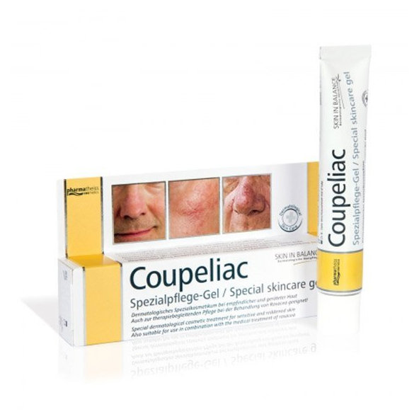 Coupeliac skin in balance je dermatologický gél na citlivú pleť je určený na pokožku so sklonom k začervenaniu a kuperóze. Kuperóza - rozšírené cievky a popraskané žilky v tvári sa najčastejšie objavujú v oblasti lícnych kostí a nosa.