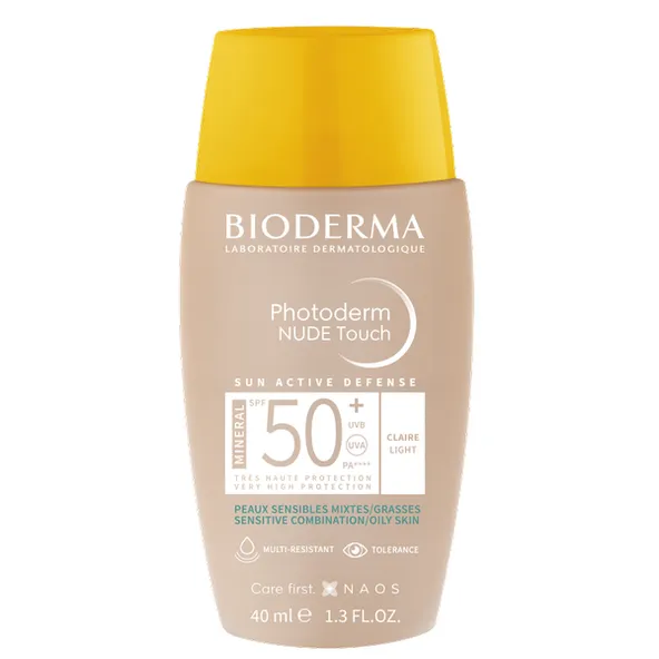 Photoderm Nude Touch LIGHT - slnečná ochrana SPF 50+ so svetlým odtieňom určená pre citlivú, zmiešanú až mastnú pleť .