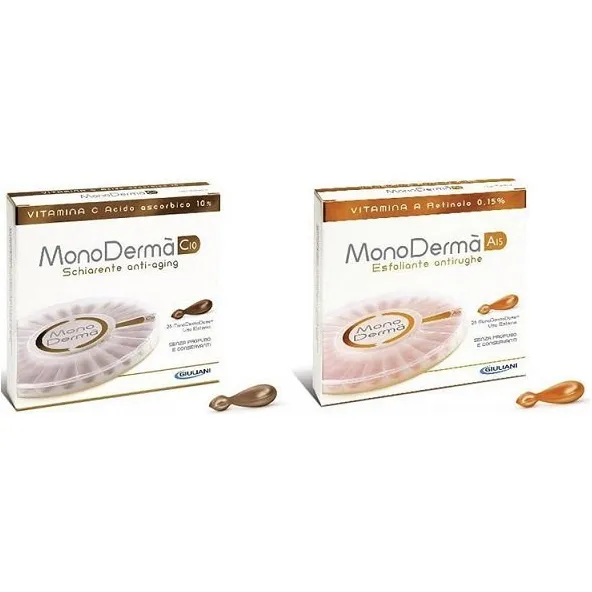 Monoderma A15+C10: Vitamín A regeneruje pokožku a stimuluje tvorbu kolagénu. Vitamín C10 zvyšuje produkciu kolagénu a elastínu, pomáha pri pigmentácii..