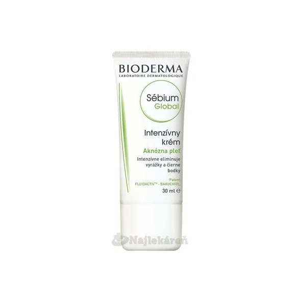 Intenzívna starostlivosť o aknóznu pleť Sébium Global eliminuje nedokonalosti a čierne bodky a zároveň pôsobí na príčiny a dôsledky týchto nedokonalostí. Reguluje kvalitu kožného mazu a vďaka kombinácii aktívnych zložiek ako sú AHA estery, kyselina salicylová a kyselina citrónová, napomáha vyhladenie a obnove pleti. Glukonát zinku v spojení s enoxolón upokojuje a znižuje začervenanie spojené so zápalovým procesom.