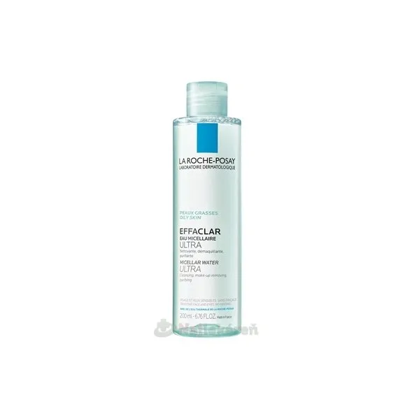 EFFACLAR MICELÁRNA VODA ULTRA je prípravok čistenia na tvár pre mastnú pleť so sklonom k nedokonalostiam. Vďaka Termálnej vode z La Roche-Posay táto micelárna voda jemne odstraňuje nečistoty, kožný maz aj make-up a zanecháva na pleti čistý a svieži pocit.