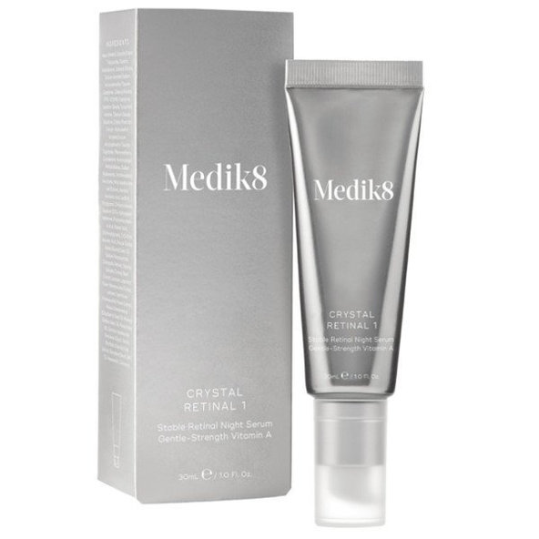 Crystal Retinal je nočné sérum od Medik8 s retinaldehydom ako hlavnou účinnou látkou. Crystal Retinal 1 s 0,01% retinalom vhodný na mladistvú problematickú pleť alebo na pleť precitlivenú