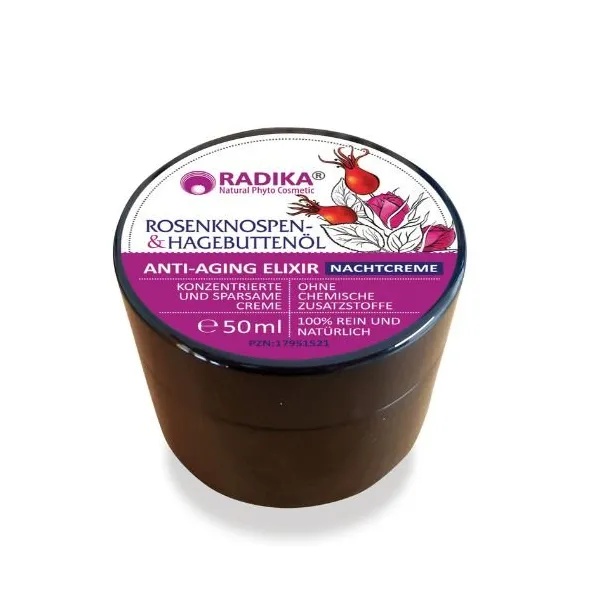 Krémový elixír - nočný očný balzam proti starnutiu pokožky s púčikmi ruží a šípkami. 100% prírodné zložky prispievajúce k zdravému a žiarivému vzhľadu pokožky.