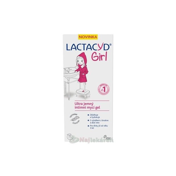 Intímny čistiaci gél lactacyd prispôsobený jemnej pokožke malých dievčat bez alkoholu a mydla