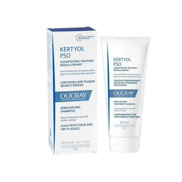 Kertyol P.S.O. Ošetrujúci šampón navracajúci rovnováhu vlasovej pokožke je doplnkovou starostlivosťou pre pokožku hlavy s plakmi suchých silných lupín, niekedy sprevádzaných