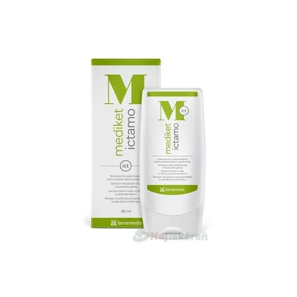 Dermatologický šampón Mediket Ictamo prispieva k riešeniu projavov seborey (seboroické dermatitídy) vo vlasoch, problémov s ranami v hlave, svrbením pokožky hlavy.