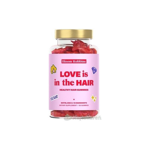 Love is in the hair je výživový doplnok na vlasy vo forme gumových cukríkov s 11 vitamínmi a 4 minerálnymi látkami. Jeho zloženie je prispôsobené tak, aby účinne bojovalo proti všetkým nepriateľom vlasov.