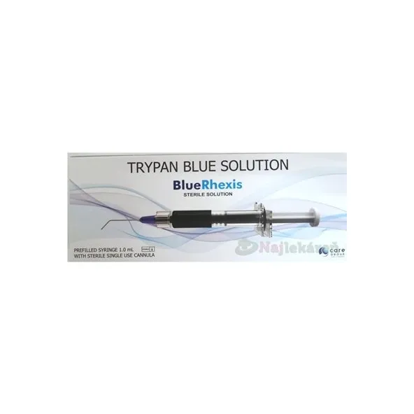 Roztok sterilný oftalmologický trypánovej modrej (kanyla), ktorý sa používa ako lekárska pomôcka v oftalmológii pri chirurgických zákrokoch.