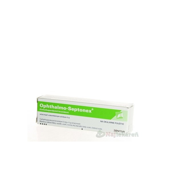 Masť OPHTHALMO-SEPTONEX má dezinfekčné účinky, vhodná na liečbu nehnisavých zápalov, pri zápaloch viečok a spojoviek.