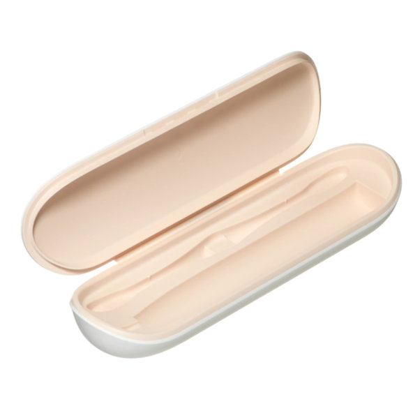 Plastové cestovné puzdro ochráni kefku pred poškodením na cestách. Je vyrobené z PP plastu v potravinárskej kvalite, ktorý je odolný voči zašpineniu a ľahko sa čistí. Do elegantného puzdra sa zmestí telo kefky a dve kefkové hlavice. Vyrába sa v 3 farebných kombináciách - mango a biela, ružová - púdrová a biela a celé biele.