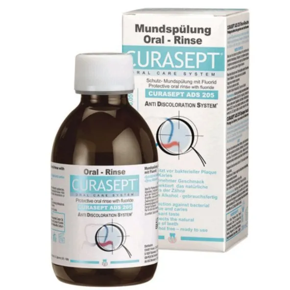 Curasept ADS 205 podporuje a dočasne napomáha pri náročnom alebo neuskutočniteľnom mechanickom odstaňovaní povlaku, pri zranení ďasien a úst a pred a po zákrokoch stomatológa. Je mimoriadne vhodný pre pacientov s implantátmi, parodontickými ochoreniami, nositeľov zubnej protézy a ortodontického aparátu.