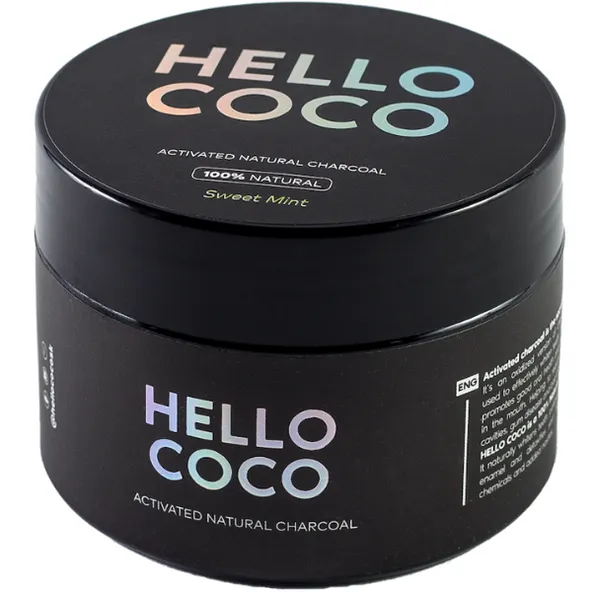 Aktívne uhlie je známa zázračná ingrediencia, ktorá je v kozmetickom priemysle veľmi obľúbená. V práškových ale aj pastových formách je jedným z najúčinnejších pomocníkov čo sa bielenia zubov týka. Výrobok HELLO COCO je 100% prírodný a veľmi obľúbený zázrak na bielenie zubov a posilňovanie ich skloviny. Zároveň dokáže počas čistenia detoxikovať celú ústnu dutinu a zabezpečiť tak svieži dych a pocit čistoty počas celého dňa. Všetky ingrediencie sú čisto prírodné.