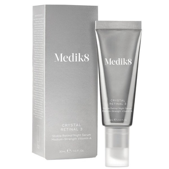 Medik8 Crystal Retinal 3 s vitamínom A (retinol) je jednou z najobľúbenejších látok na starostlivosť o pleť. Pôsobí proti akné, spomaľuje starnutie pleti a redukuje pigmentáciu. Ak s ním doteraz nemáte skúsenosti, stabilné nočné sérum Crystal Retinal 3 s 0,03% enkapsulovaným retinaldehydom pre vás bude to pravé.