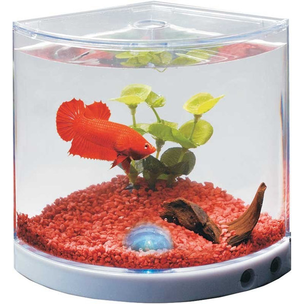 Nádoba ideálna pre bojovníkov, malé rybičky. Nádrž je podsvietená LED diódou, ktorá dáva efekt "lesknutia".