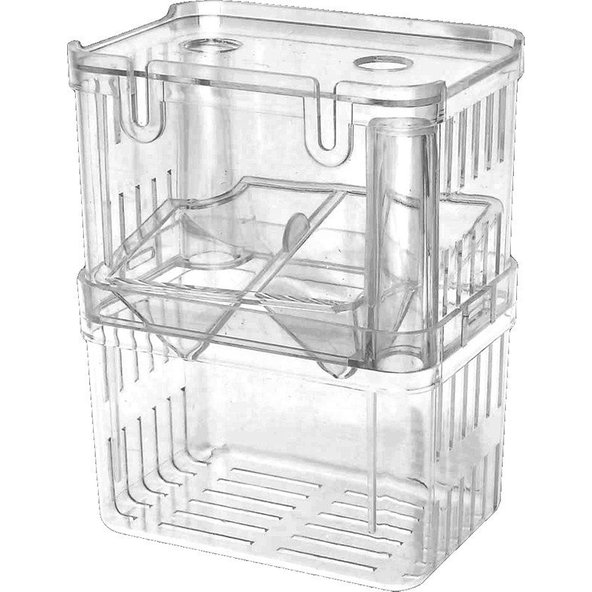 Mladé novonarodené ryby klesnú ku dnu a dostanú sa cez rošt do spodnej komory, vďaka čomu sú chránené pred prípadným kanibalizmom.