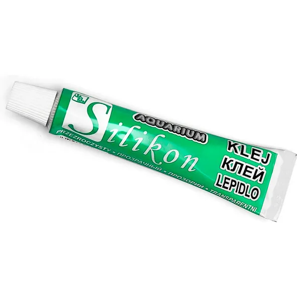 Transparentný silikón pre lepenie a opravu skla pre akváriá a terária.