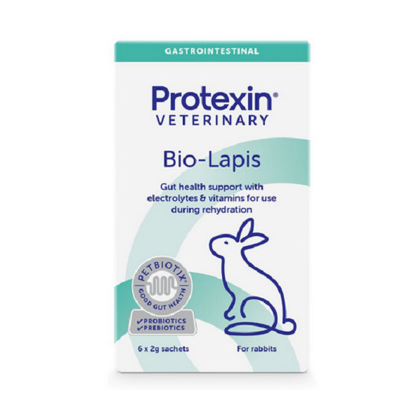 PROTEXIN BIO Lapis je rozpustný prášok určený na rehydratáciu a obnovenie črevných funkcií pre králiky a spoločenské zvieratá.