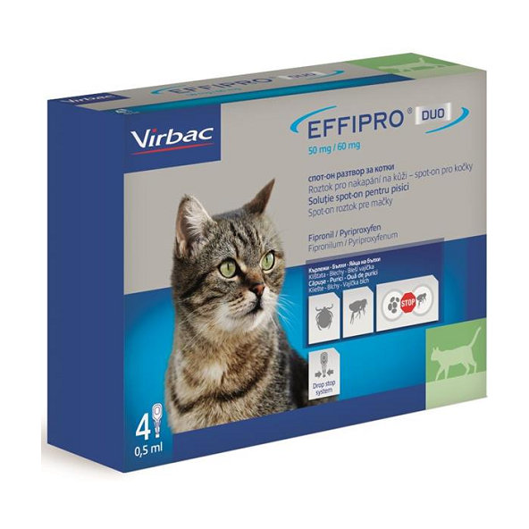 EFFIPRO DUO CAT 4 x 0,5ml spot-on pipeta proti kliešťom a blchám pre mačky