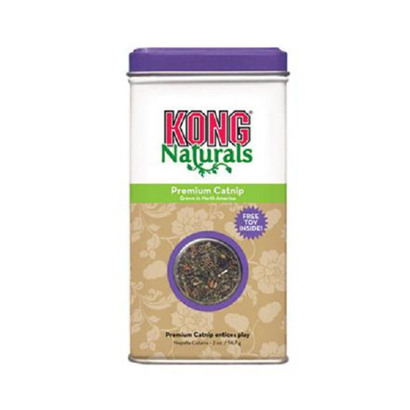 KONG Naturals Premium North American Catnip (kocúrnik/ mačacia tráva)zostáva čerstvý v praktickej, opätovne uzatvárateľnej prenosnej dóze.