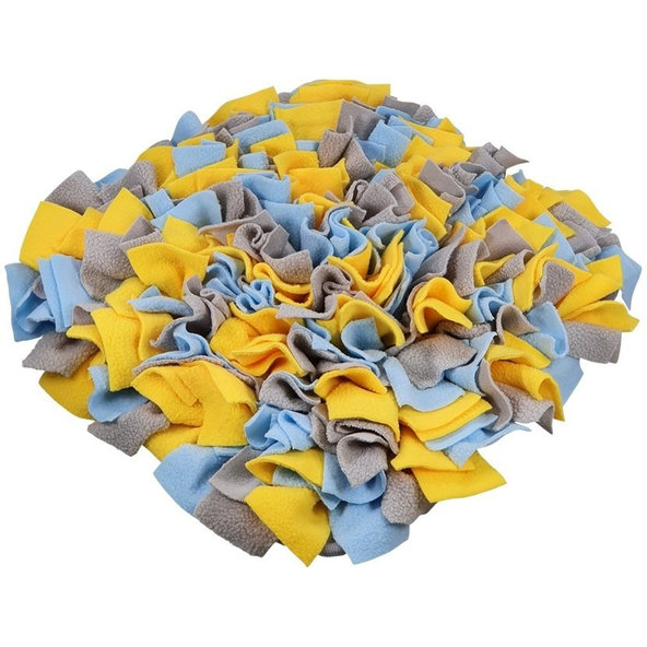 Interaktívna hračka pre psy a mačky Nobby "Colore" koberec na snacky o veľkosti 40x40cm so spodnou stranou vybavenou protišmykovými bodmi. Zábavná podložka pre psy a mačky od Nobby je aktívna hračka, ktorá zaujme každého psa alebo mačku. Tento hravý spôsob hľadania potravy má pozitívny vplyv na správanie zvieraťa a môže ho zabaviť a zároveň podporiť rozmýšľanie u psa. Okrem toho môže byť rohož použitá aj ako protišmyková podložka u psov na oddych a relaxáciu.