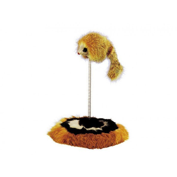 Obľúbená hračka pre mačky s myškou na pružinke zasadenej do pevnej podstavy s dlhým plyšom. Keď sa mačka prestane hrať, hračku zase schovajte. Uvidíte, ako bude opäť po nejakej dobe zaujímavá.