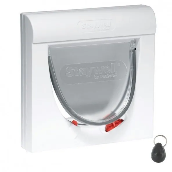 Originálne plastové dvierka Staywell od značky Petsafe. Farba biela. Vhodné pre mačky do 7kg. S tunelom (pre dvere s hĺbkou max. 5,4cm) a magnetickým kľúčom. Dvierka majú 4-smerné uzamykanie (len dovnútra, len von, otvorené, zatvorené)