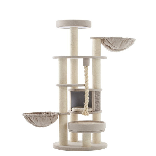 Mačací strom "Fida" v krémovej farbe, materiál: plyš a celkovou výškou 165cm.