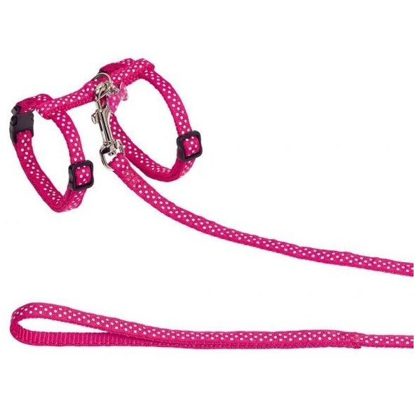 Či už pri návšteve veterinára alebo pri cestovaní - aj mačky musia byť v určitých situáciách kvôli vlastnej bezpečnosti na vodítku. Súpravu "Dots" zdobí štýlový vzor bodiek na ružovom podklade.