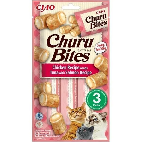 Maškrta Inaba Churu Bites cat Kura s tuniakom a lososom 12x3 tuby 360g