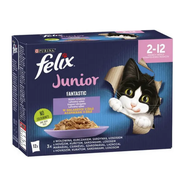 FELIX Fantastic cat Multipack junior (hovädzie,kura,sardinky,losos) v želé kapsička 12x85g