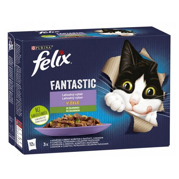 FELIX Fantastic cat Multipack výber so zeleninou želé kapsičky pre mačky 12x85g