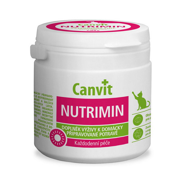 Canvit Nutrimin obsahuje komplex 14 vitamínov, organicky viazaných mikroprvkov a Taurinu na prípravu vyváženej kŕmnej dávky.