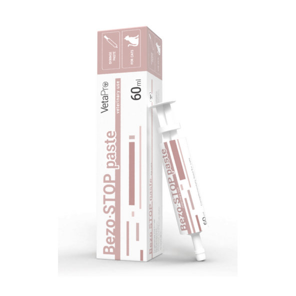 Doplnkové krmivo vo forme gélu vo vytláčacej striekačke pre mačky. Bezo-Stop pasta je určená na odstraňovanie a prevenciu trichoberoárov u mačiek.
