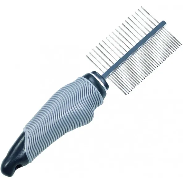 Obojstranný hrebeň na rozčesanie srsti psov a mačiek, vhodný pre stredne dlhú až dlhú srsť.