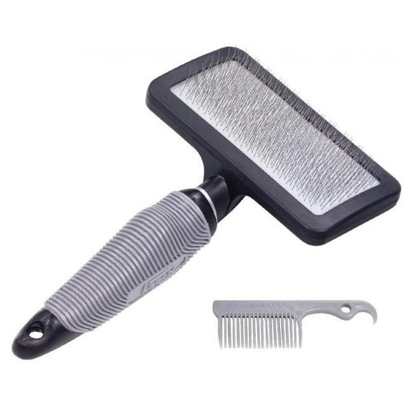 Profesionálna kefa pre psy a mačky na jemné odstránenie odumretých chlpov a nečistôt zo srsti Nobby Starline Care L. Súčasťou balenia je čistiaci hrebeň zadarmo.