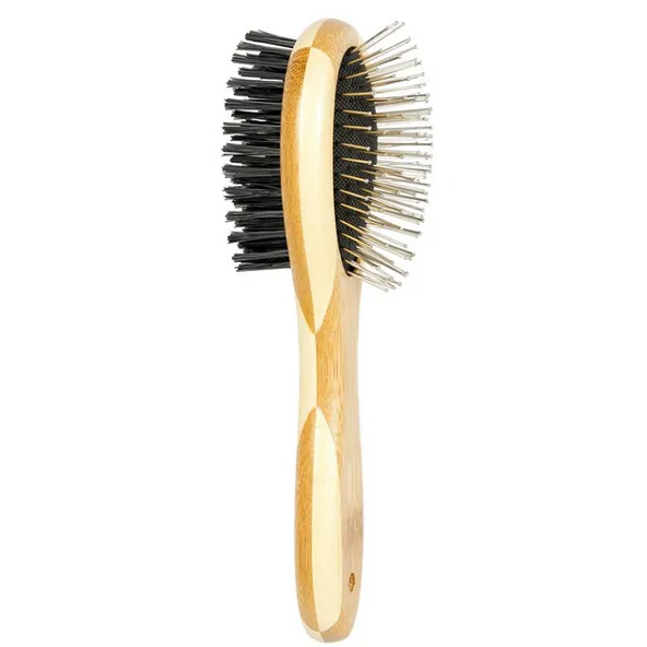 Masážna kefa DUVO+ Combo bambus odstraňuje odumretú srsť a nečistoty, vhodná pre všetky typy srsti.