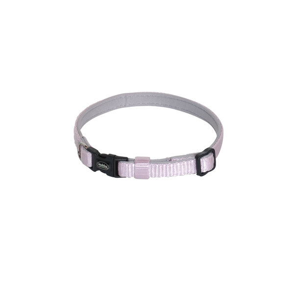 Obojok pre malé psy a šteniatka s neoprénovou podšivkou vo svetlofialovej farbe veľkosti XS-S s nastaviteľnou veľkosťou 20-35cm.