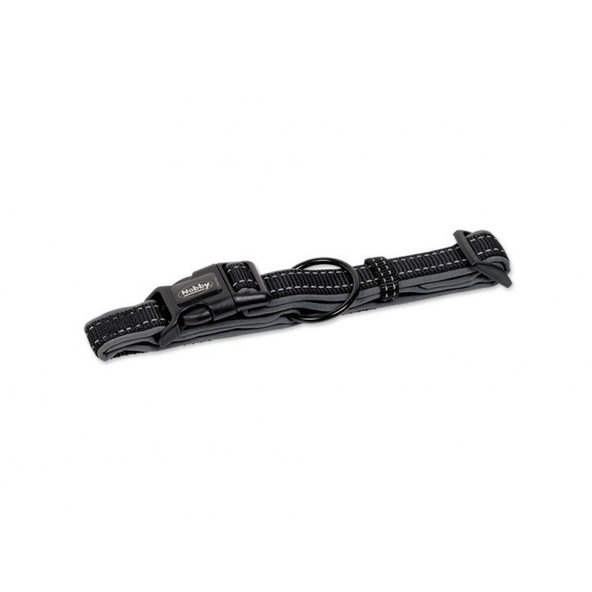 Kvalitný rýchlo schnúci nylonový obojok pre psov s neoprénovou podšívkou a reflexnými prvkami Nobby Classic Reflect Soft veľkosti XS vo farbe čierna pre obvod krku psa 20-30cm.