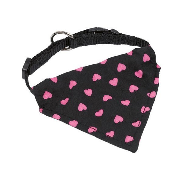 Klasický nylonový obojok pre malé psy s textilnou šatkou Nobby Scarf Mini pre obvod krku 30-40cm vo farbe hnedá s ružovými srdiečkami