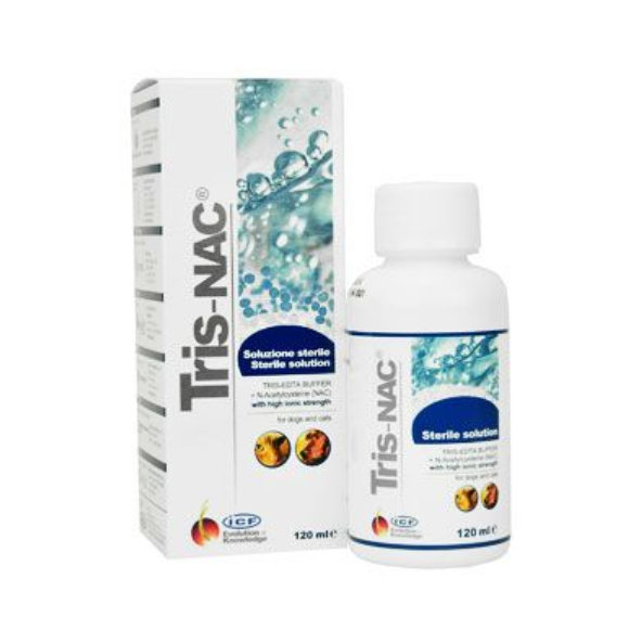 Tlmivý roztok na zápaly stredného ucha pre psov a mačky. TRIS-EDTA + N-acetylcysteín (NAC) s vysokou jontovou silou.