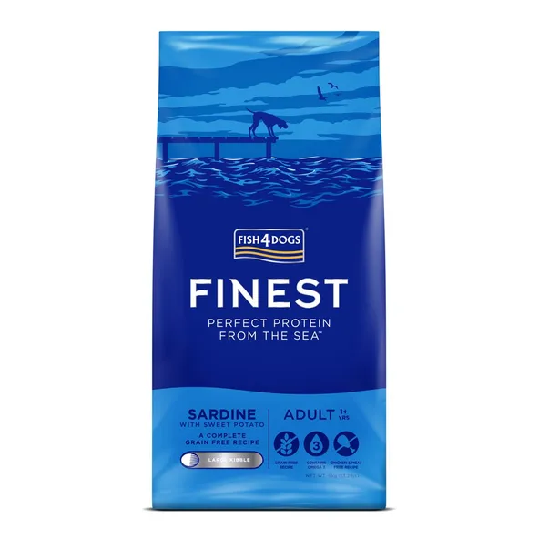 FISH4DOGS Granule veľké pre dospelých psov Finest sardinka so sladkými zemiakmi 6kg, 1+