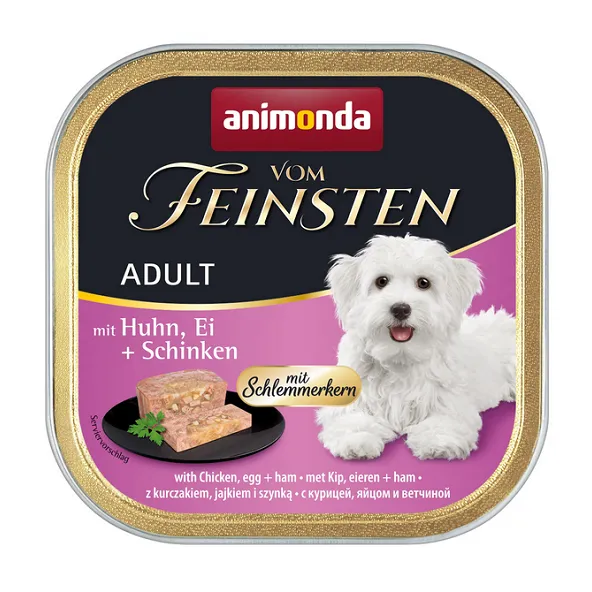 Animonda Vom Feinsten je vanička s kuracím mäsom so šunkou, pre dospelé psy (1-6 rokov) všetkých plemien.