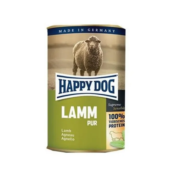 Vlhké kompletné krmivo pre psov HAPPY DOG Lamm Pur sa vyrába výhradne iba z čerstvého mäsa odporazených jahniat (pôvod Nemecko), obsahujú len jeden jediný zdroj proteínov (= Single Protein) a preto sú obzvlášť vhodné na kŕmenie psov pri neznášanlivosti bežných krmív a pri alergiách.