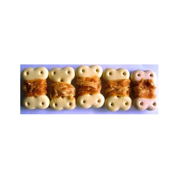 Chutné doplnkové krmivo pre dospelé psy všetkých plemien vyrobené zo sušienok a kuracieho mäsa.
