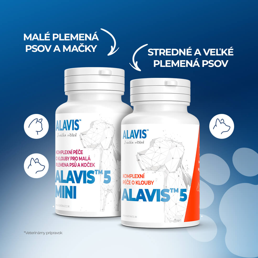 Pre malé plemená psov a mačky odporúčame alternatívu produktu s totožným zložením v menších tabletách pod názvom ALAVIS 5 MINI.