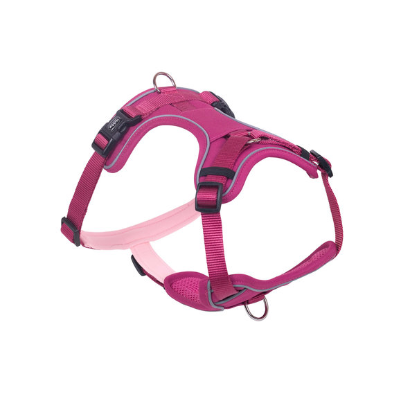 Ergonomicky tvarovaný postroj Nobby Mailo XS pre aktívne psy v malinovej farbe.