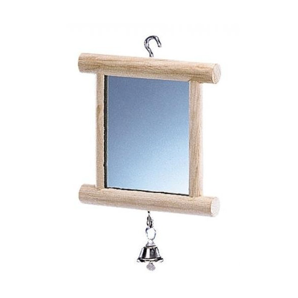 Drevená hračka so zrkadielkom. Prirodzenú zvedavosť a túžbu po rôznorodosti a vzrušení vášho opereného kamaráta dokonale naplní táto hračka. Je ideálna na zavesenie do klietky hlavne pre malé papagáje.